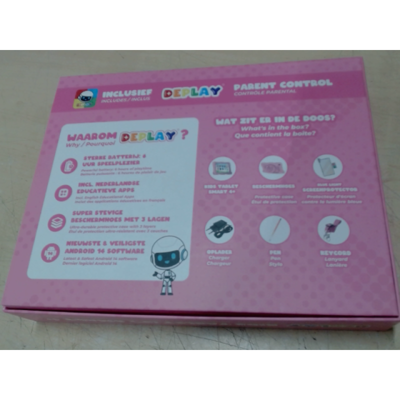 De roze Kids Smart 4+ tablet van Deplay is ontworpen voor kinderen en heeft een middelgroot touchscreen met een diagonaal van 8 inch (20,32 cm) en een praktische stylus. De stylus biedt meer precisie op het scherm en meer leermogelijkheden. De Kids Smart 4+ tablet biedt je kind uren visueel plezier op een leuke manier. Met zijn eenvoudige bediening, geschikt voor kinderen van 2 tot 8 jaar, is deze tablet een doordacht speelkameraadje. Je kind kan zich vermaken terwijl het zijn hersenen traint en zijn taal-, logica- en schrijfvaardigheden oefent. Met een gewicht van slechts 381 g is het tablet gemakkelijk mee te nemen in een tas of met de hand.