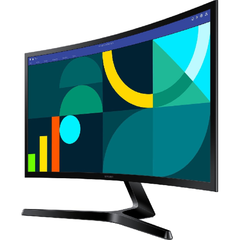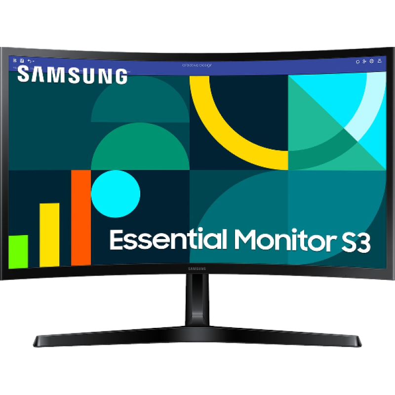 De elegante Samsung S3 Essential curved 24-inch monitor in zwarte uitvoering biedt met zijn HD-resolutie en VA-technologie indrukwekkende visuele ervaring met levendige beelden. Zijn hoge verversingssnelheid en scherpe contrasten tillen zowel je productiviteit als je entertainment naar een hoger niveau.