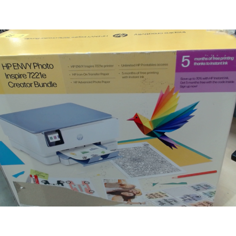 Met de HP Envy Inspire 7221e all-in-one printer in blauw-witte kleur print je altijd in hoogwaardige kwaliteit. Deze slimme printer is multifunctioneel en staat steeds voor jou paraat. Via de HP Smart-app print je snel én draadloos vanaf elk apparaat. De printer heeft een strak design en past zo in elke werkomgeving. Het ontwerp is ook duurzaam en bestaat voor meer dan 45% uit gerecycleerd plastic. Hij drukt documenten automatisch dubbelzijdig af, waardoor je zowel tijd als papier bespaart. Daarnaast beschikt hij over een ingebouwde fotolade voor het eenvoudig printen in verschillende formaten. Zo toveren jij en je gezin vanop de computer alle prachtige foto’s op fotopapier in hoogwaardige kwaliteit. Deze printer ondersteunt ook de HP Smart-app die je diverse opties aanbiedt bij het afdrukken.