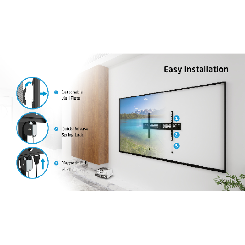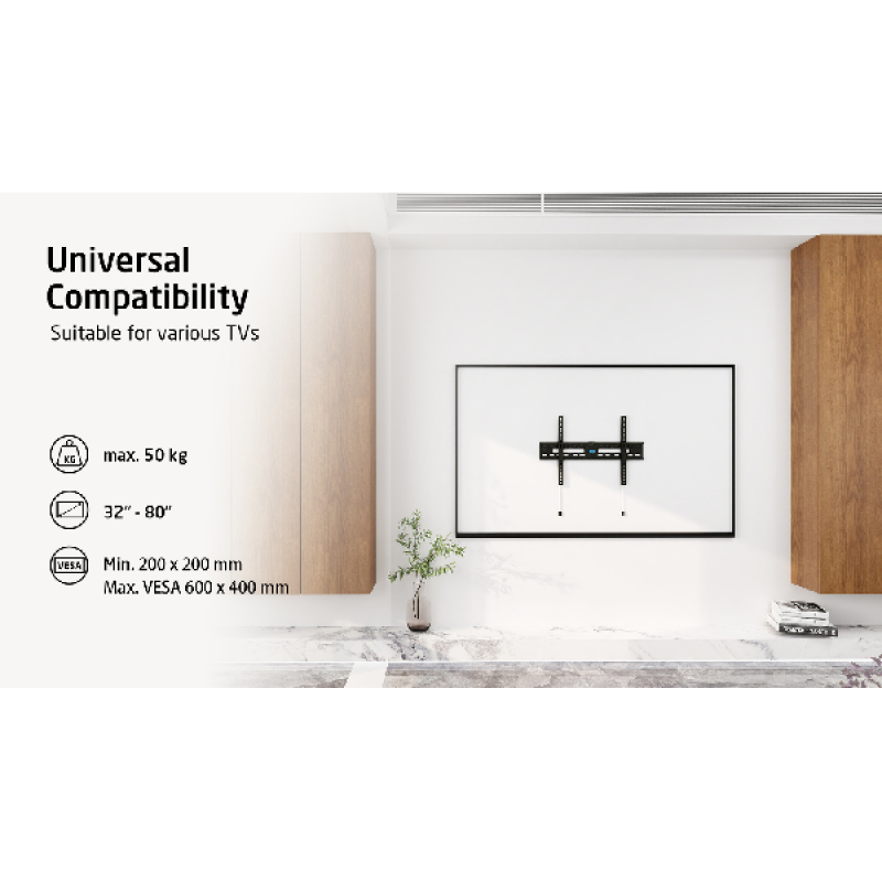 Hang je tv stevig aan de muur met deze zwarte ITV 1200 muurbeugel van Isy. Geschikt voor schermen met een diagonaal tussen 32 en 80 inch en een gewicht van minder dan 50 kg.