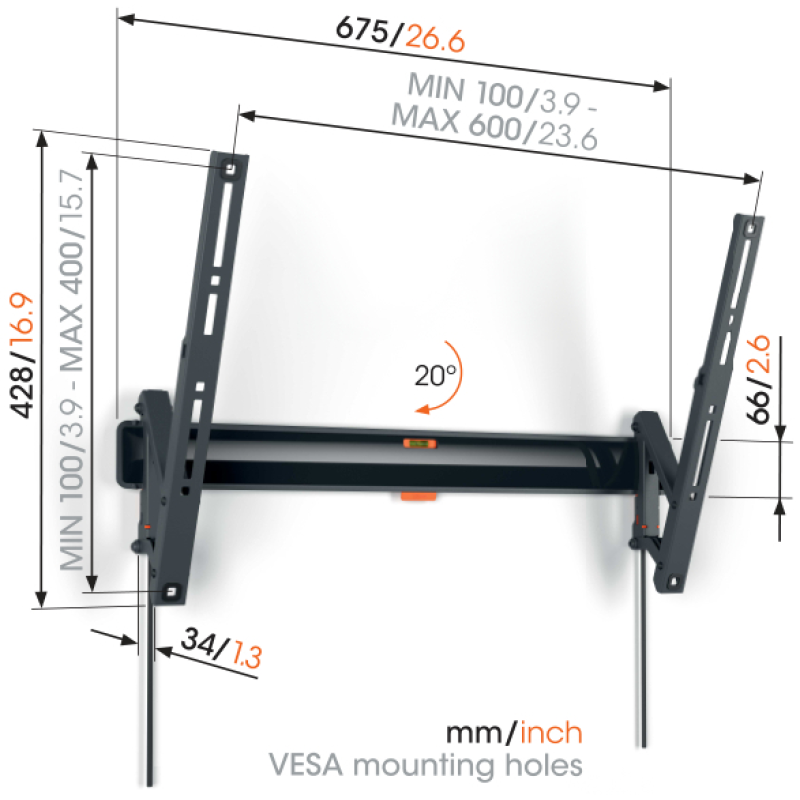 Heb je een grote tv en zoek je daarvoor een veilige tv beugel met kantelfunctie? Maak kennis met de stijlvolle COMFORT Tilt tv beugel van Vogel’s. Je kunt deze beugel tot 20° kantelen en is geschikt voor tv’s van 40 tot 77 inch met een gewicht van maximaal 35 kg. Vogel’s COMFORT Tilt tv beugels voldoen aan de strengste veiligheidseisen. De beugel is dan ook TÜV-gecertificeerd en glansrijk getest tot driemaal het maximale gewicht. Daarnaast beschikt de beugel over Vogel’s unieke ClickLoc™ veiligheidssysteem. Daarmee vergrendel je de tv met een hoorbare aan de beugel. Zachte patches op de beugel zorgen dat je de achterkant van je tv niet bekrast tijdens het installeren. De Vogel’s COMFORT Tilt tv beugel installeren is simpel. Een boormal schroeven en fischer® DuoPower pluggen zijn bijgesloten. Handig: de beugel heeft een ingebouwde waterpas. Met Vogel’s gratis DrillRight™ AR App teken je eenvoudig je eerste boorgat af.