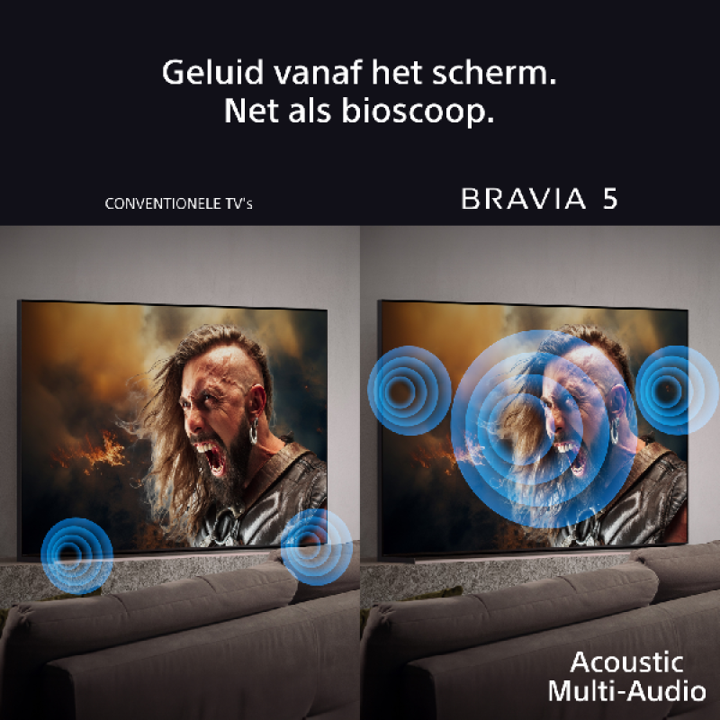 Geniet van een meeslepende kijkervaring en hoogwaardige beeldkwaliteit met de Sony 65XR55B BRAVIA 5 4K Mini LED (2025) Smart-tv in zwarte uitvoering. De XR Mini LED levert een opvallend contrast op, voor een scherp en helder beeld. Deze 4K Led TV heeft niet alleen goed beeld, met Dolby Vision & Atmos krijg je de surround-sound ervaring die je verwacht in de bioscoop. Daarvoor wordt ook gebruik gemaakt van AI Voice Zoom 3 en 3D Surround Sound Upscaling. Zo hoor je precies wat er gezegd wordt, en weet je ook nog eens waar het geluid vandaan komt. Netflix kijk je via Google TV, terwijl je muziek streamt via Apple AirPlay 2. Film kijk je met het bioscooppakket, met Dolby, IMAX en meer. Of ga lekker gamen met het Game Menu, waar je tools als ALLM en eARC allemaal vindt in één plek. Dankzij Remote Play kun je zelfs gamen als je console zich in een andere ruimte bevindt. Met de PlayStation 5 ontgrendel nog meer exclusieve functies om je game-ervaring mee naar een hoger niveau te tillen. Zo haal jij het meeste uit je abonnementen en consoles.