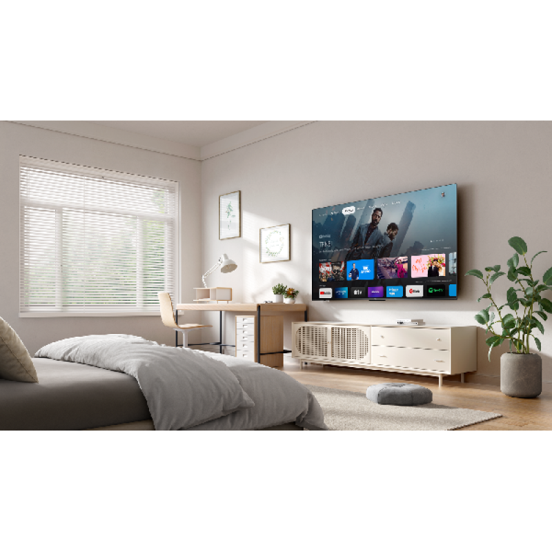De TCL 75P6K-tv heeft een modern ontwerp met een ultradun metalen frame dat harmonieus past in elk modern interieur. Het scherm met een diagonaal van 75-inch (191 cm) biedt een maximaal weergavegebied, ideaal om volledig op te gaan in je favoriete content. Ondanks zijn grote afmetingen is hij licht van gewicht en je kan hem zowel op een standaard installeren als aan de muur bevestigen. Het strakke en elegante ontwerp benadrukt het beeld zonder afleiding, zodat je je volledig kunt concentreren op de actie op het scherm.