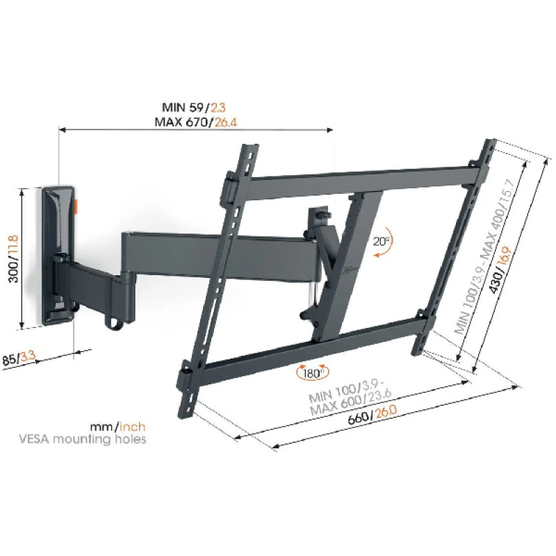 Je tv in de gewenste kijkhoek te positioneren is ongekend makkelijk. De COMFORT Full-Motion+ tv beugel beschikt namelijk over Vogel’s uniek One-Finger™ Movement technologie. Hierdoor scharniert de beugel zeer licht en soepel. Dankzij de extreem lange armen kan je je tv ver draaien. Wil je weten hoeveel graden precies? Vul op deze pagina jouw tv-type in en zie direct de werkelijke draaihoek van jouw tv.