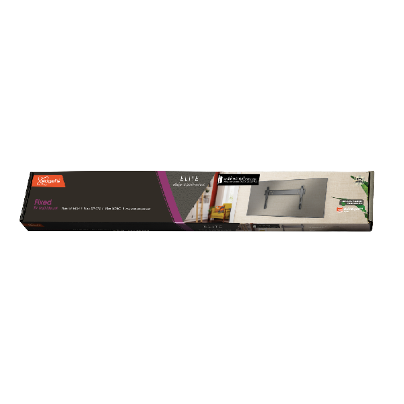 De Vogel’s ELITE TVM 5705 in zwarte uitvoering is een vaste, ultraslanke muurbeugel voor grote tv’s van 40" (102 cm) tot 110" (279 cm). Hij ondersteunt tot 100 kilo, is compatibel met VESA 600x400, en zorgt voor een veilige, strakke montage dicht tegen de muur (slechts 1,3 cm). Kortom, een prima oplossing voor een elegante en stabiele installatie.