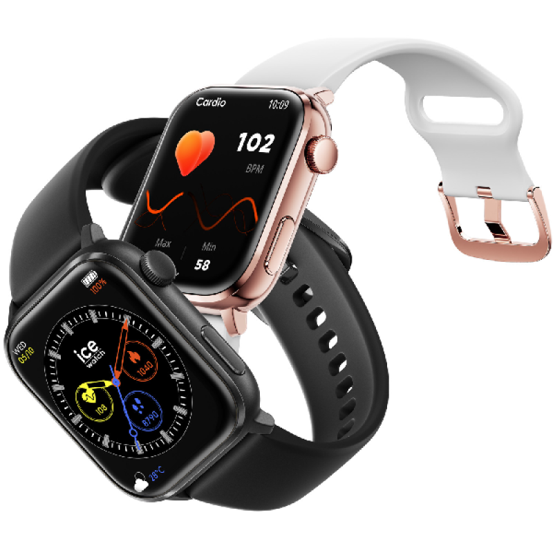 Het Ice-Watch 2.0 verbonden horloge heeft een 1,96” Amoled kleurendisplay met een resolutie van 410 x 502 pixels. Het zit in een aluminium kast van 39 x 48 mm en is bevestigd aan een zachte, comfortabele siliconen band. Het hele horloge weegt slechts 190 gram, dus je vergeet al snel dat je het om je pols hebt. Het bandje is verwisselbaar zodat je je stijl kunt aanpassen aan de gelegenheid, en je kunt ook de schermweergave aanpassen aan je behoeften.
