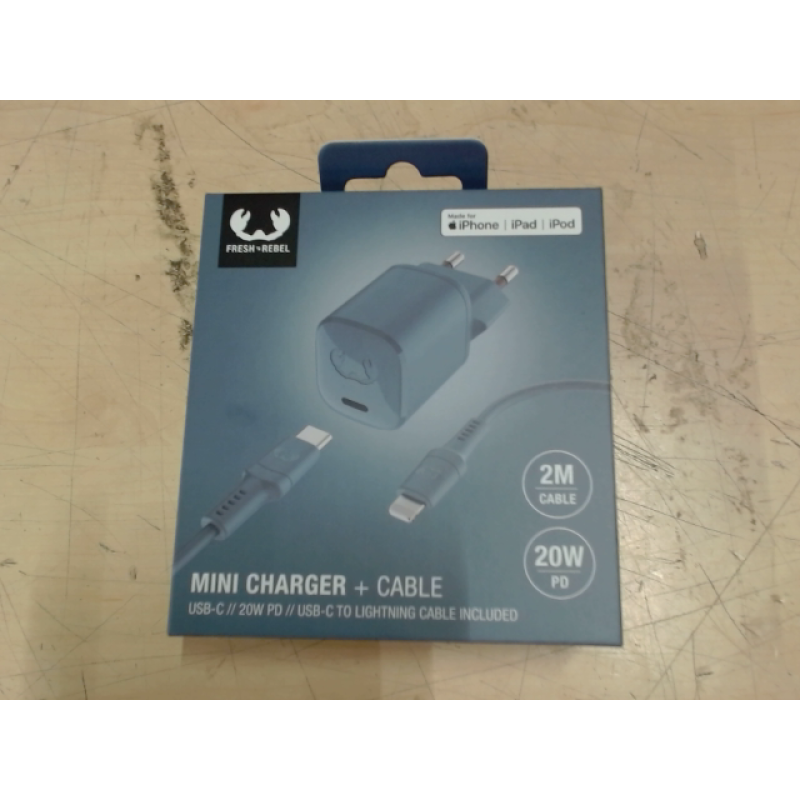 FRESH N REBEL Mini netadapter USB-C PD 20 W met Apple Lightning kabel Dive Blue (2WCL20DV)