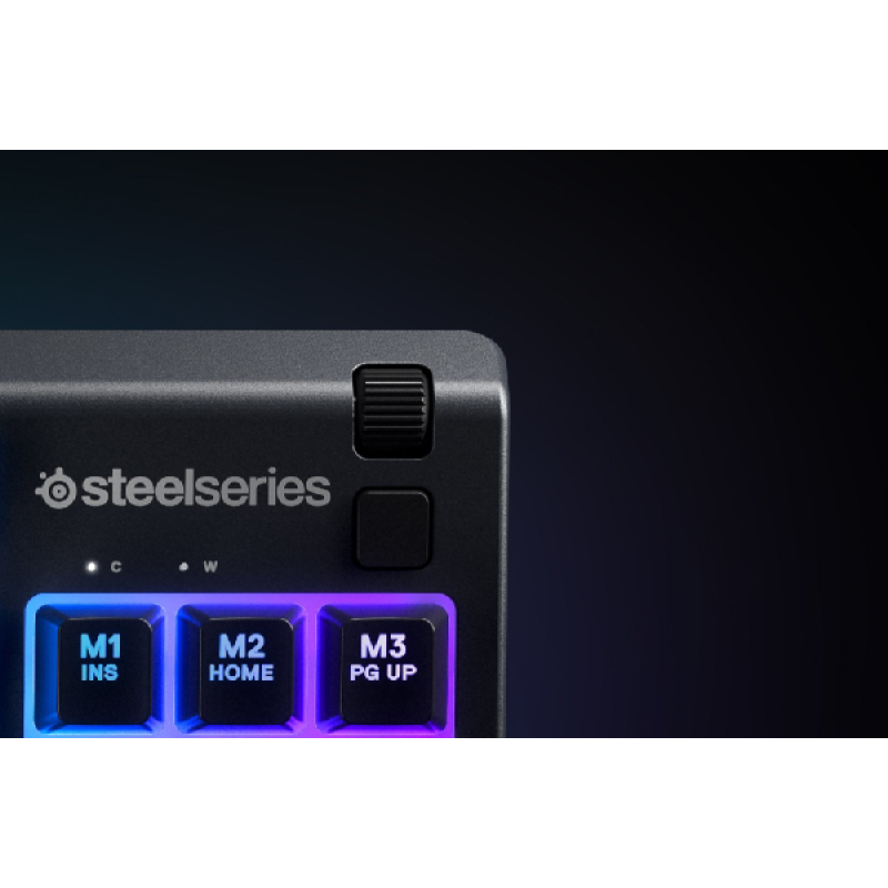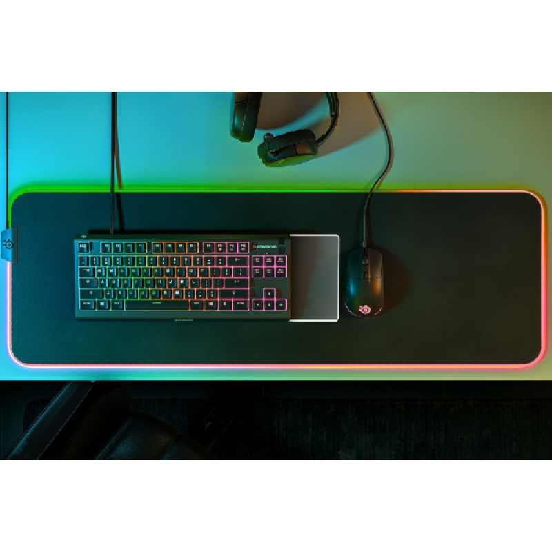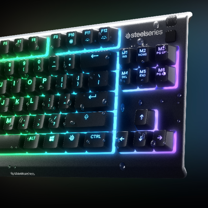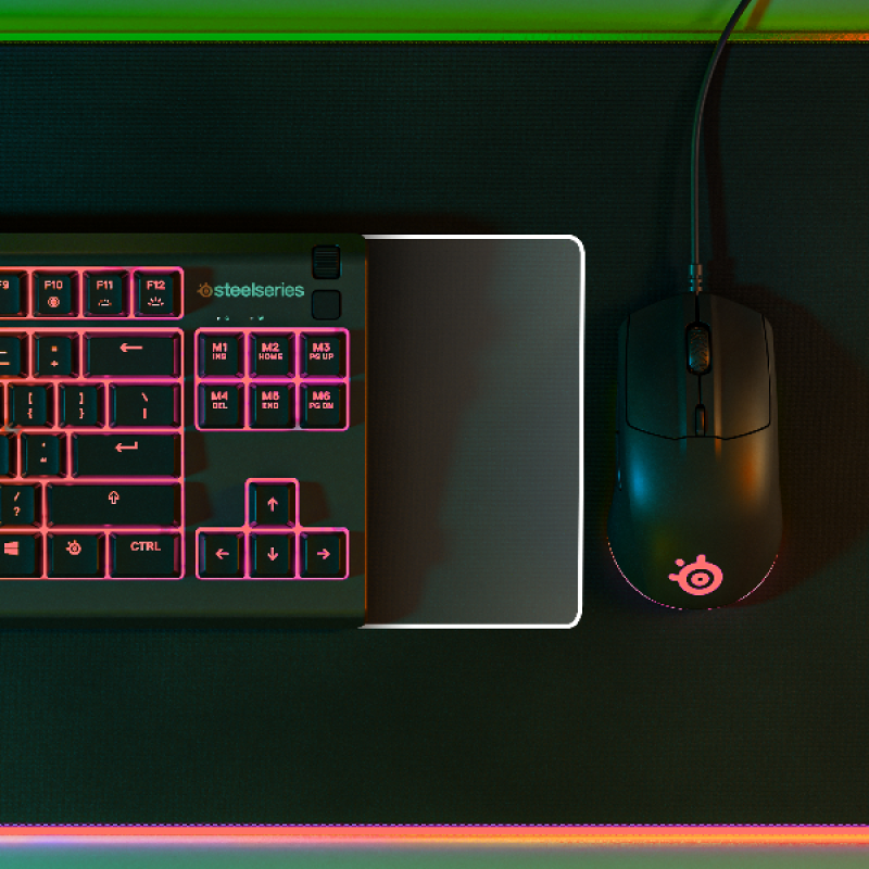 De Apex 3 is voorzien van fluisterstille Whisper-Quiet-schakelaars met lage wrijving. Zijn compacte TKL-vormfactor biedt een gegarandeerde duurzaamheid, terwijl zijn dynamische PrismSynch RGB-verlichting in 10 zones schitterende regenboog-effecten toevoegt aan je gaming-setup. Via de SteelSeries Software Engine stel je jouw favoriete kleurenschema’s samen of laat je de verlichting op gebeurtenissen in het spel reageren. Tot slot is het toetsenbord voorzien van snoergeleiding om je werkblad netjes te houden en is hij compatibel met PC, Mac, en de voornaamste spelconsoles.