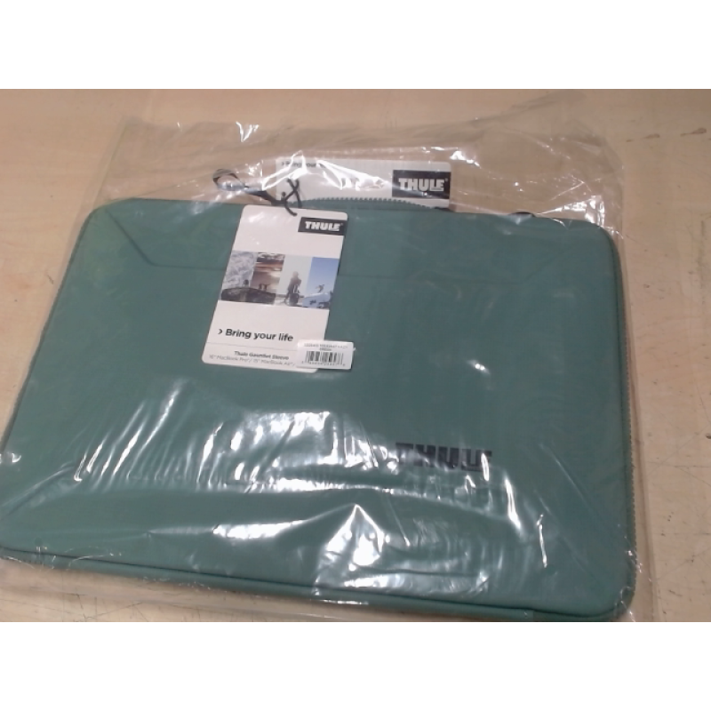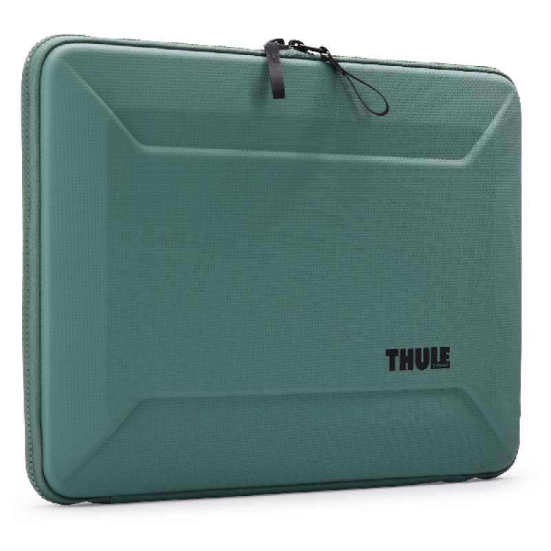 De groene Gauntlet 5-beschermhoes van Thule beschermt je Mac of laptop tegen stoten en krassen. Deze hoes van polyurethaan is geschikt voor apparaten tot 16 inch (40,64 cm), heeft een gewatteerde binnenkant en is extreem duurzaam. Hij sluit met een rits. Zo kun je je computer in alle veiligheid vervoeren.