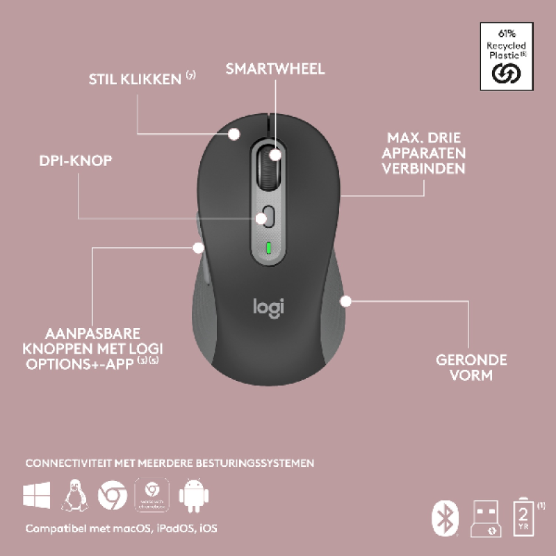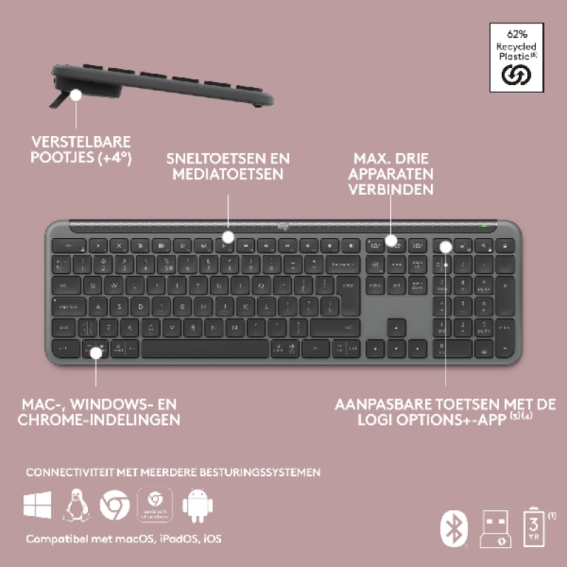 Batterijduur 36 maanden (toetsenbord) / 24 maanden (muis)