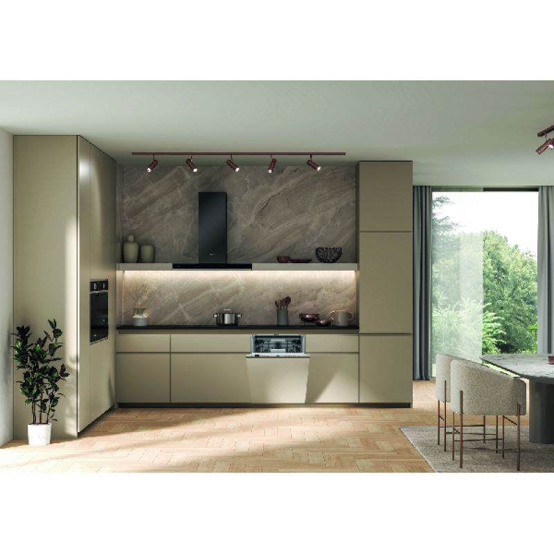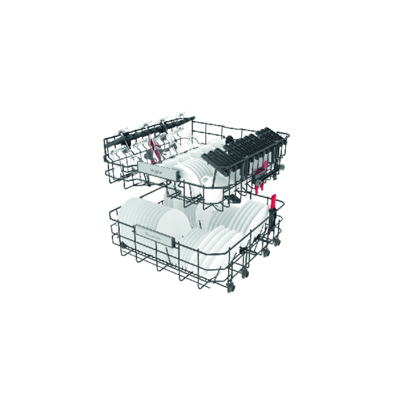 De WHIRLPOOL WH6IB14BN7S1S vaatwasser combineert discretie met efficiëntie en gebruiksgemak. Met zijn standaardafmetingen is hij gemakkelijk in elke inbouwkeuken te installeren. Hij heeft een capaciteit van 14 couverts en om de meest hardnekkige etensresten uit grote vaat te verwijderen, biedt hij 10 wasprogramma's en 5 temperatuurinstellingen van 30 tot 65 graden. Dankzij de 6th Sense technologie past hij automatisch de temperatuur, de cyclustijd en het waterverbruik aan de hoeveelheid afwas aan, waardoor je geld bespaart. Met een verbruik van 64 kWh per cyclus is dit apparaat energiezuinig en heeft het energielabel B gekregen. Om je vaat efficiënt op te bergen, beschikt het over 3 praktische opbergladen: een voor bestek, een voor kopjes en glazen met verstelbare hoogte en een voor borden en pannen. De vaatwasser is zeer intuïtief te bedienen met het bedieningspaneel aan de binnenzijde van de deur. Tot slot zorgt de NaturalDry technologie dat de deur automatisch opent aan het einde van het programma, zodat je vaat kan drogen.