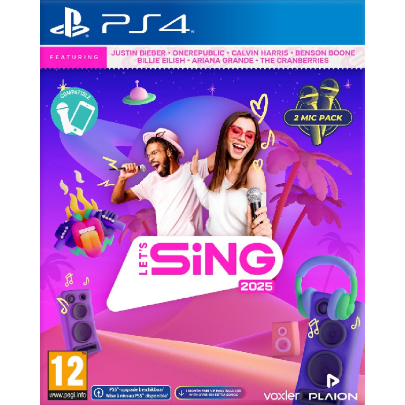 Met Let's Sing 2025 voor PlayStation 4 beleef je de ultieme karaoke-ervaring en laat je jouw kwaliteiten zien als zanger of zangeres. Je kan kiezen uit een brede selectie internationale songs of zingt mee met je favoriete officiële muziekvideo. Bovendien krijg je er 2 microfoons bij, zodat je je samen met een vriend of vriendin helemaal kunt laten gaan.