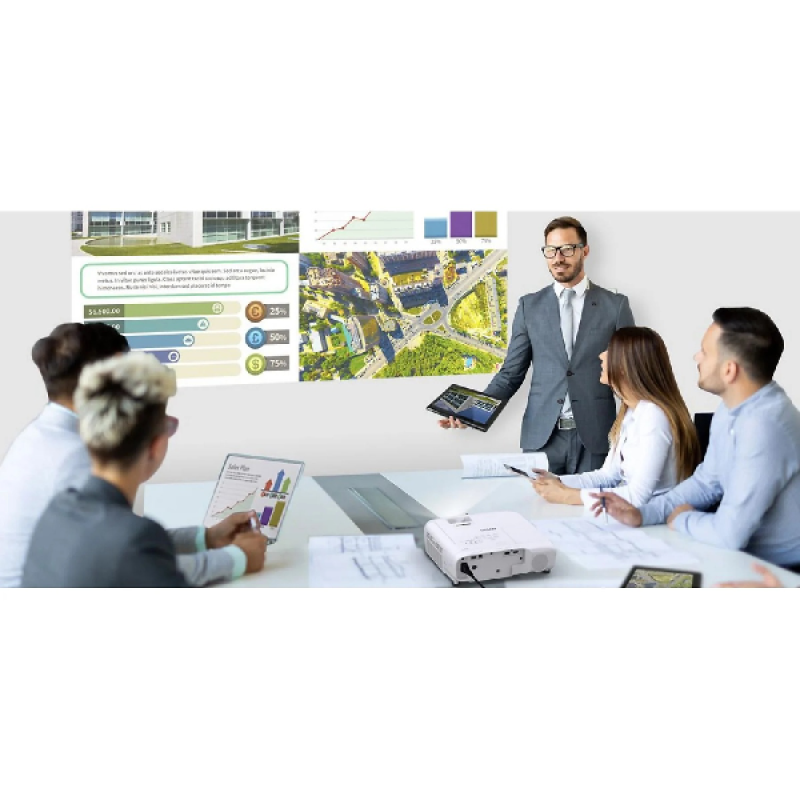 Geef dynamische zakelijke presentaties en geniet van meeslepend entertainment met de Epson EH-TW840 in witte uitvoering. Je installeert de projector in een mum van tijd en profiteert van een groot schermdiagonaal tot wel 337 inch (856 cm). Zelfs in fel verlichte ruimtes krijg je levendige, gedetailleerde en levensechte beelden te zien met een helderheid tot 4.000 lumen. De beamer biedt een weergave in Full HD-kwaliteit met een contrastverhouding van 16000:1 en extra heldere kleuren dankzij 3LCD-technologie. Met de ingebouwde 2W-monoluidspreker profiteer je van krachtig geluid en heldere audio, zodat je geen externe luidsprekers nodig hebt.