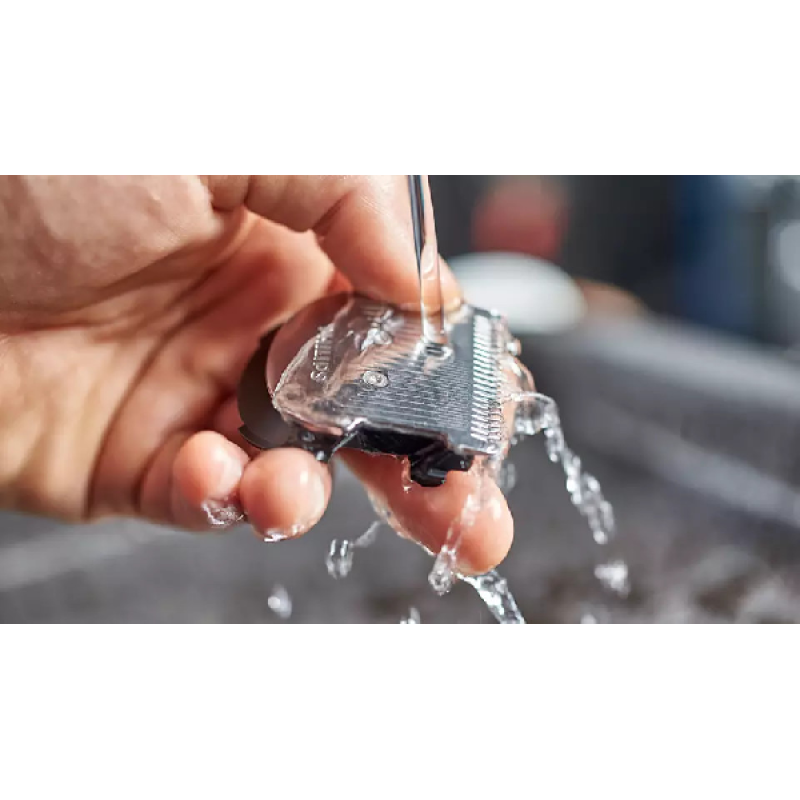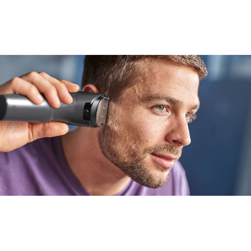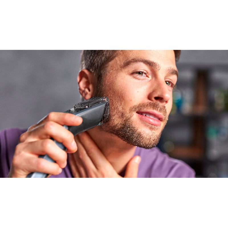Of u nu een baard hebt of voor de perfecte stoppelbaard gaat: u hoeft alleen de verstelbare baardkam aan te sluiten en een van de 12 vergrendelbare standen, van 1 tot 23 mm, te selecteren. Er zit precies 2 mm tussen elke lengtestand. Als u kortere stoppels wilt, verwijdert u de kam helemaal voor een gladde trim van 0,5 mm.