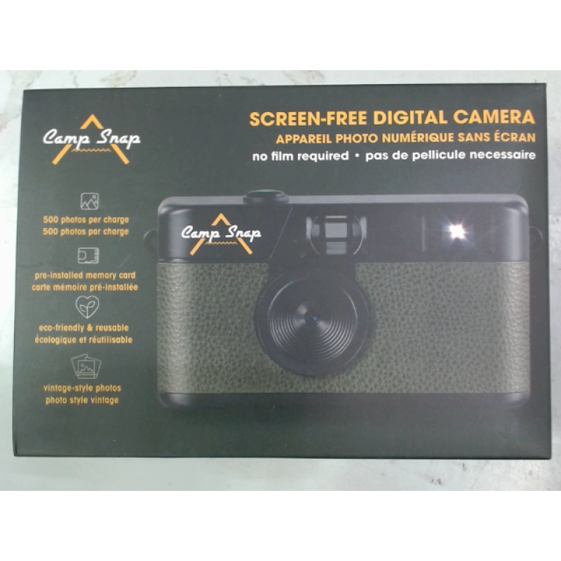 De CAMPSNAP CS-V105-BK-WW Compactcamera Green is een eenvoudige en lichte camera van 95 gram die je overal mee naartoe neemt. Uitermate geschikt voor wie snel en spontaan wil fotograferen. Dankzij het retrofilter krijgen je foto's een nostalgische touch. Verder krijg je er een 4 GB micro SD-kaart bij, goed voor zo'n 2.000 beelden. De camera werkt met een oplaadbare batterij en is makkelijk op te laden via USB-C. Geen gedoe met instellingen of apps, gewoon richten en klikken. Ontworpen voor vakantiekiekjes of snelle snapshots onderweg.
