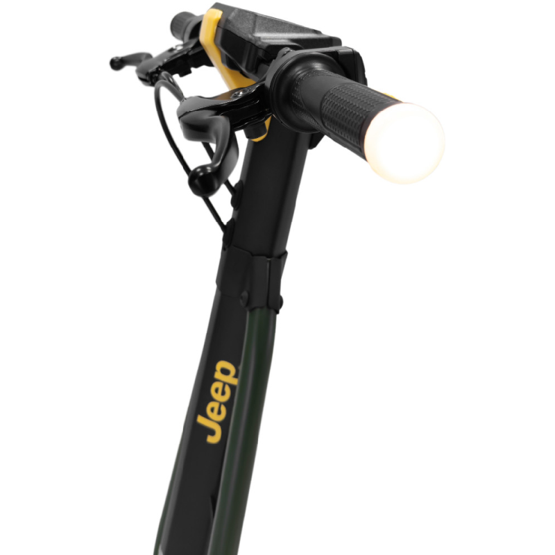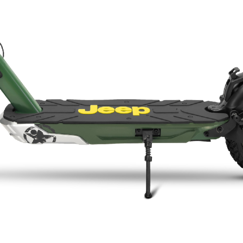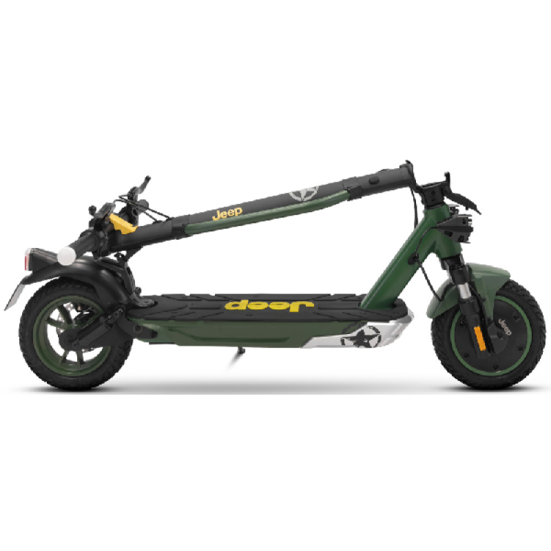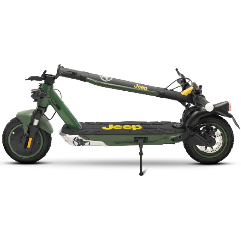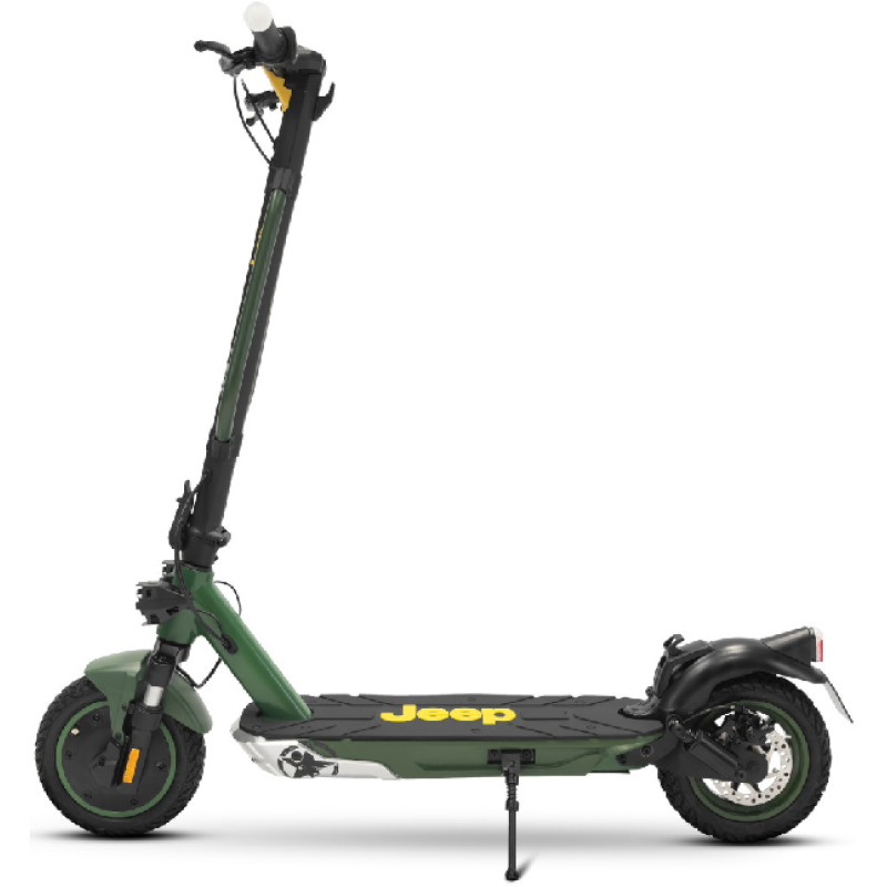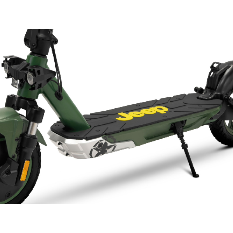 Met de groene Jad Advanced Safety elektrische step van Jeep haal je gemakkelijk een topsnelheid van 25 km/u. De combinatie van een krachtige 350 watt motor en een lange batterijduur bereik je vlot een afstand tot maar liefst 40 km. Deze opvouwbare e-step heeft een robuust en stoer ontwerp, het frame is ontworpen van magnesium en de step weegt 18,4 kilo. Hij is uitgerust met 10 inch (25,4 cm) banden die je een soepele rit geven zelfs op oneffen wegen. Dankzij hoogwaardige materialen en geavanceerde functies neemt deze elektrische step je mee op je volgende avontuur.