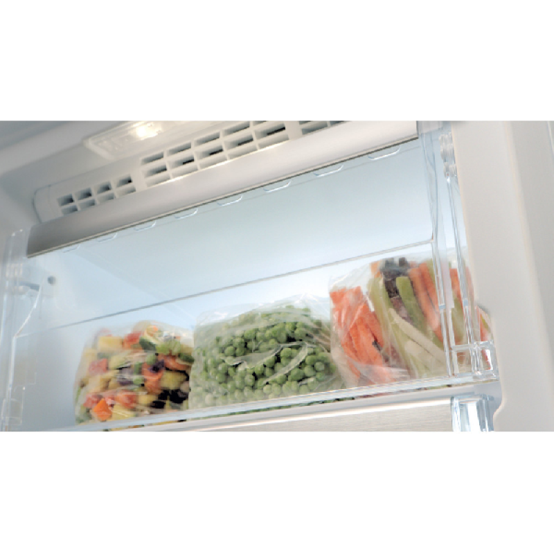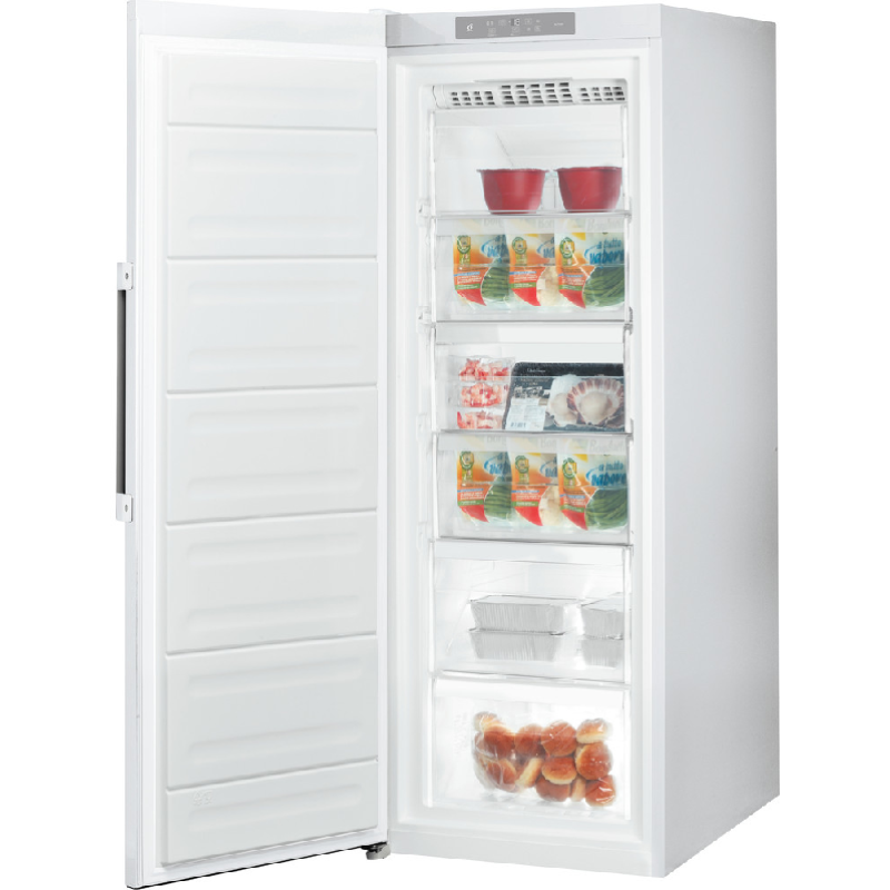 Voeg deze witte UW6 F2C WB staande vriezer van Whirlppol aan je keuken of bijkeuken en geniet van een ruim volume van 228 liter voor het bewaren van je diepvriesproducten. Hij heeft standaard afmetingen en is eenvoudig vrijstaand te installeren in de ruimte van je keuze. De omkeerbare deur is gemakkelijk te openen dankzij de grote roestvrijstalen handgreep, die een uitstekende grip garandeert. Binnenin bewaar je je voedsel per soort in de 6 transparante lades. Om het aantal benodigde ontdooisessies te verminderen, heeft Whrilpool deze vriezer uitgerust met de NoFrost-technologie, die ijsvorming vermindert. Met het digitale bedieningspaneel op de deur kan je de binnentemperatuur in één oogopslag controleren. Als de deur te lang openstaat, hoor je een geluidssignaal. En bij een stoomstoring houdt het je voedsel 24 uur bevroren.