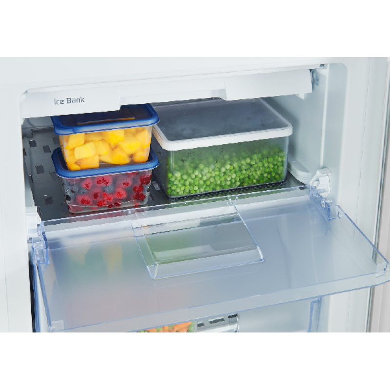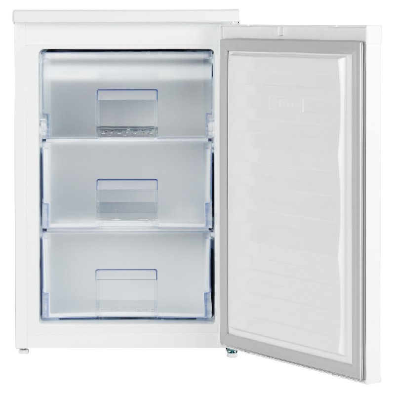 Voor kleine keukens of als extra vriezer in een bijkeuken of garage komt deze witte tafelmodel vriezer van BEKO goed van pas. Hij is eenvoudig vrijstaand te installeren en vindt, met zijn compacte afmetingen van 54 x 84 x 59 cm, probleemloos zijn plekje in een hoek of onder een werkblad. Deze diepvriezer heeft een inhoud van 95 liter, verdeeld over 3 compartimenten - 2 lades en een legplank met klep - elk met een transparante voorkant zodat je gemakkelijk kan zien wat erin zit. De deur is omkeerbaar, om de opening aan de indeling van je keuken aan te kunnen passen.