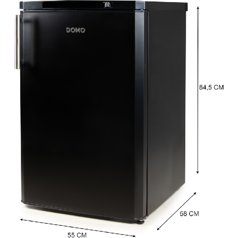 Om hem te plaatsen in een hedendaagse, donkere keuken heeft Domo deze tafelmodel vriezer een elegante zwarte afwerking gegeven. Hij kan vrijstaand staan in elke ruimte, maar met zijn standaardafmetingen van 55 x 84,5 x 58 cm past hij gemakkelijk onder een werkblad tussen 2 keukenkasten. Dankzij de omkeerbare deur kun je hem overal installeren en de openingsrichting aanpassen aan de indeling van je keuken. De roestvrijstalen handgreep maakt het openen heel eenvoudig.