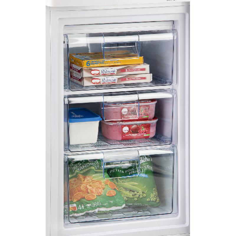 De vriezer heeft een optimale indeling met een volume van 80 liter, onderverdeeld onder 3 laden. Zo kan je verschillende soorten producten efficiënt van elkaar scheiden en de beschikbare ruimte optimaal benutten. De transparante laden bieden een duidelijk overzicht, zodat je snel kunt zien wat je nodig hebt zonder elk compartiment te hoeven openen. Bovendien heb je een vriescapaciteit van 6 kg ter beschikking, dat binnen 24 uur je verse voedingsmiddelen snel en efficiënt invriest.