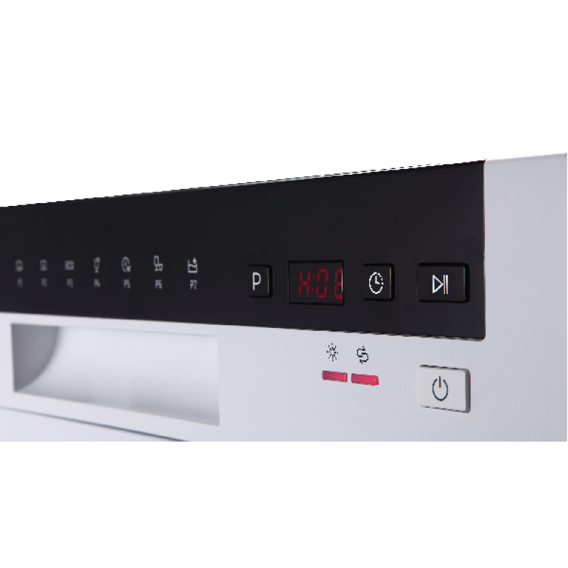 Deze vaatwasmachine biedt je een brede selectie van 7 verschillende wasprogramma’s om dagelijks te wassen. Als je weinig tijd hebt kies je voor Snel, en laat je het apparaat 30 minuten draaien op 40°. Indien je een sterk bevuilde vaat hebt, kies dan voor Super of Intensief, die je vaat grondig afwassen op 65°. Indien je gevoelig keukengerief zoals wijnglazen moet afwassen, kies dan voor Delicaat. Hij is ook voorzien van een zuinig Eco-programma dat iets langer duurt. Verder is dit apparaat voorzien van een handig bedieningspaneel met aanraakknoppen, en kun je desgewenst de uitgestelde start activeren.