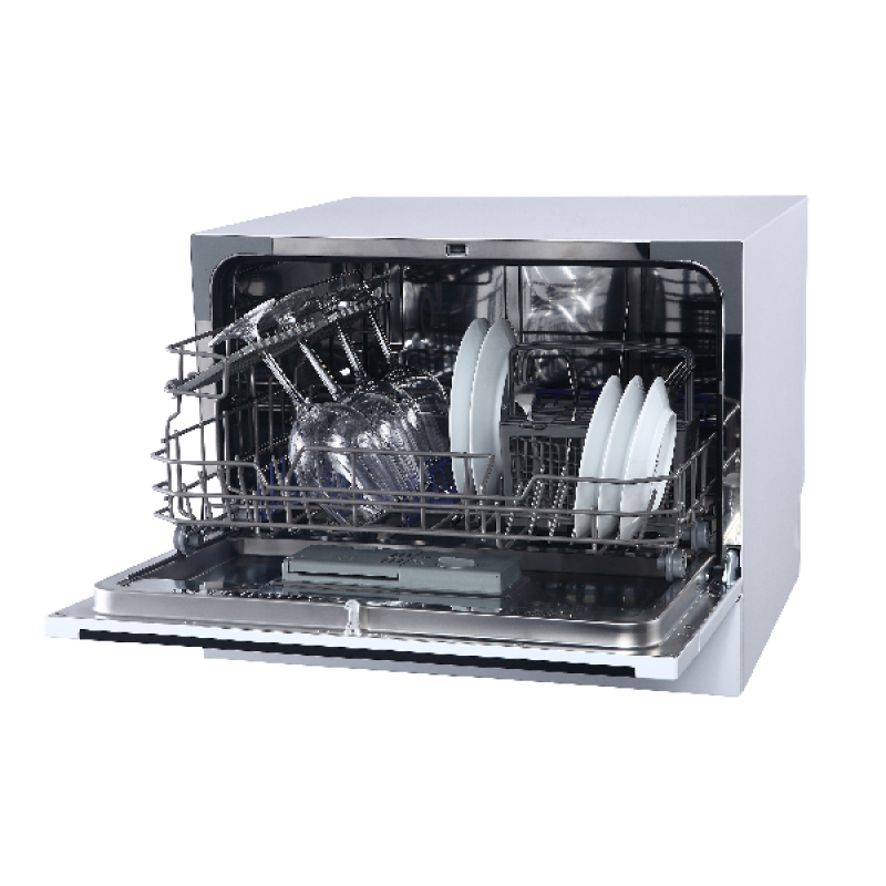 Voor dit apparaat heb je niet veel ruimte nodig, dankzij de geringe afmetingen van 55 x 43,8 x 50 cm plaats je hem makkelijk even waar in je keuken. Deze vaatwasser is door zijn praktische indeling zeer gebruiksvriendelijk: hij is voorzien van één korf, die over een glashouder beschikt en steun biedt voor je kopjes en wijnglazen. Aan de andere kant beschikt hij over voldoende spijlen om borden, schalen en een bestekmand plaats te bieden.