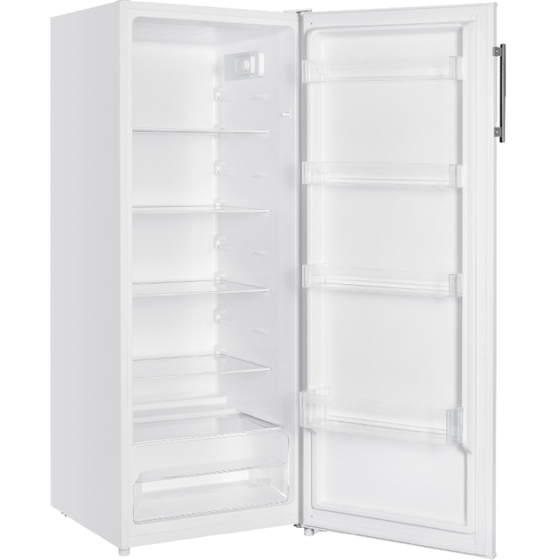 Je kunt een grote hoeveelheden voedsel bewaren in de OFR 311 Domo kolomkoelkast met zijn volume van 242 liter. Hij is elegant met zijn witte afwerking en eenvoudig vrijstaand te installeren in je keuken. Dankzij de omkeerbare deur kan je de openingsrichting aanpassen aan de indeling van je keuken. Om je voedsel efficiënt op te bergen, beschikt hij over 4 stevige glazen legplanken en een vershoudlade. Je kan de binnentemperatuur eenvoudig instellen en controleren met het draaiknop binnenin. Dankzij de led-verlichting kan je de inhoud van de koelkast altijd goed zien.
