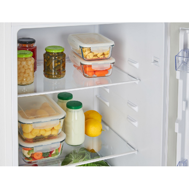Deze kolomkoelkast beschikt over één compartiment met een totaal volume van 265 liter. Binnenin heeft hij 5 ultrabestendige glazen leggers die je op de hoogte plaatst die jou het beste uitkomt. Zo kan je de opslagruimte naar eigen inzicht verdelen en organiseren. Ze zijn beter bestand tegen barsten en krassen dan onbehandeld glas, zodat je zware voorwerpen kan opbergen zonder het risico te lopen dat ze breken of barsten. Op de bodem van de koelkast bevindt zich een vershoudlade, ideaal voor het bewaren van groenten en fruit. De deur bevat 4 in hoogte verstelbare bakken voor een optimale organisatie van al je pot-ten en flessen