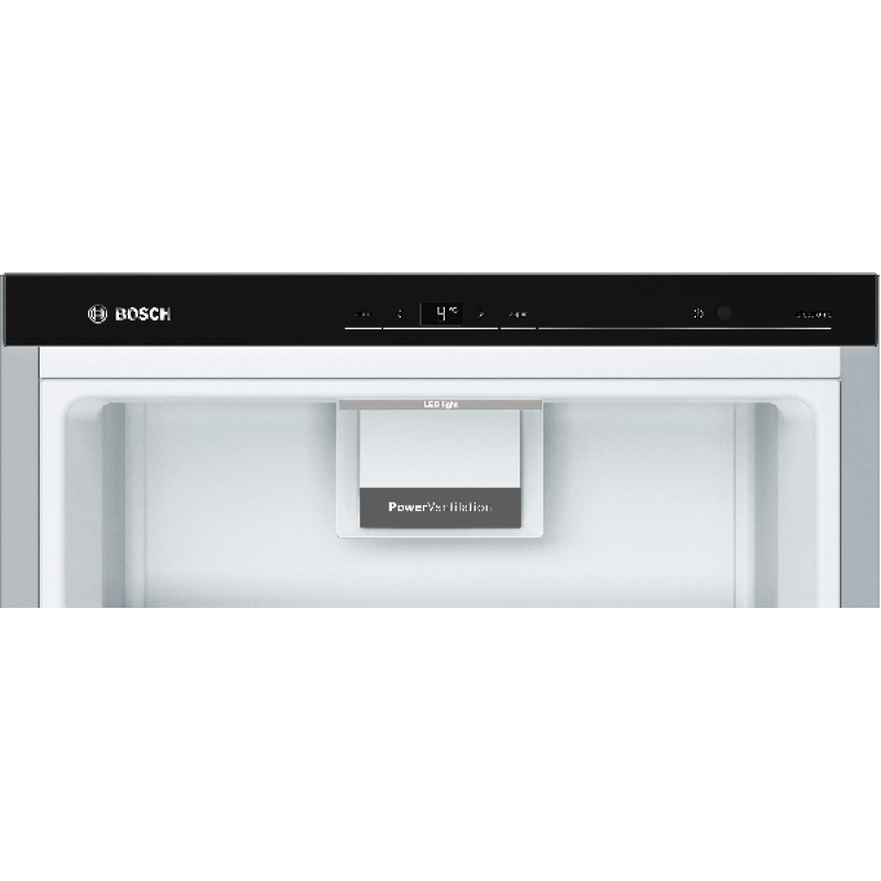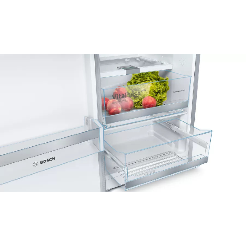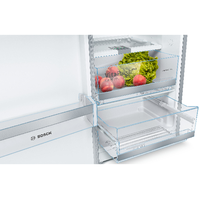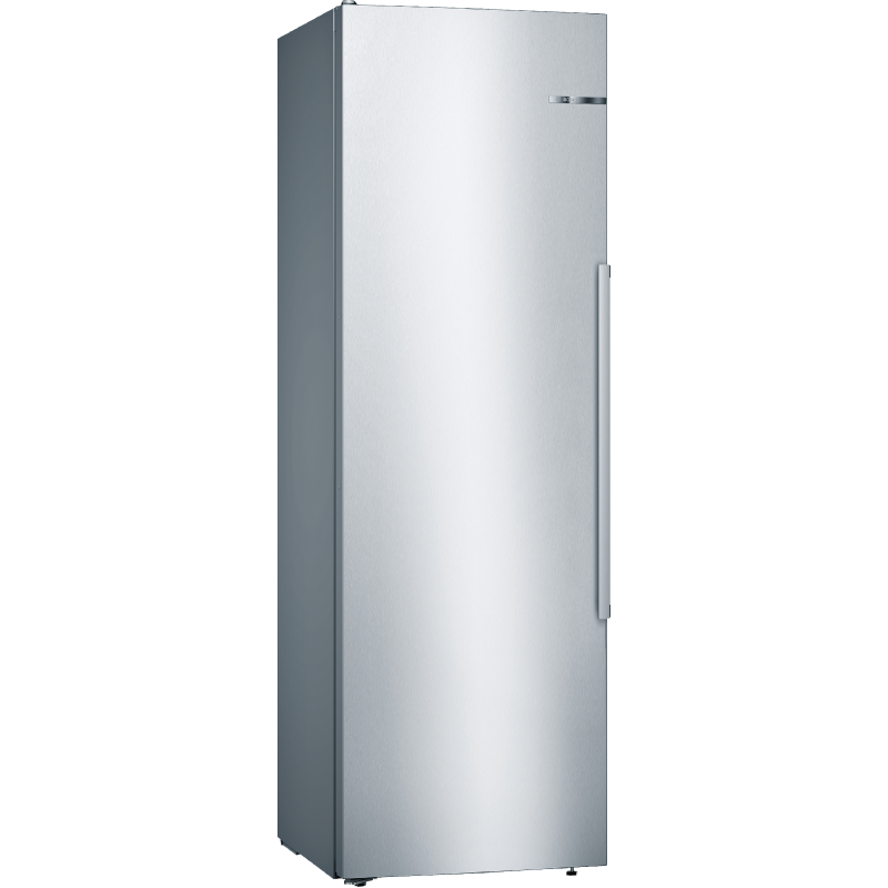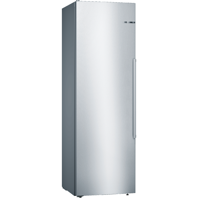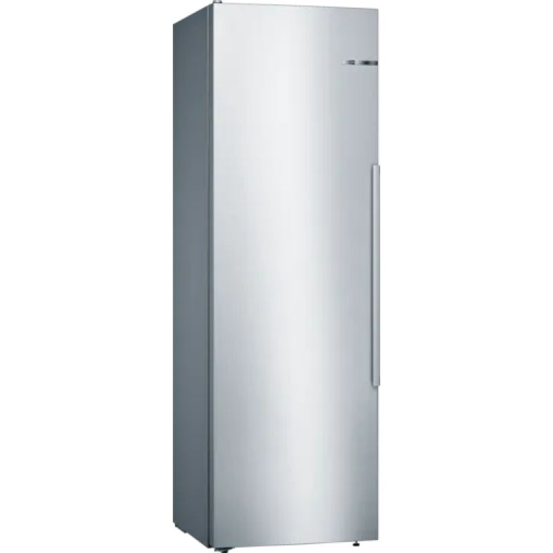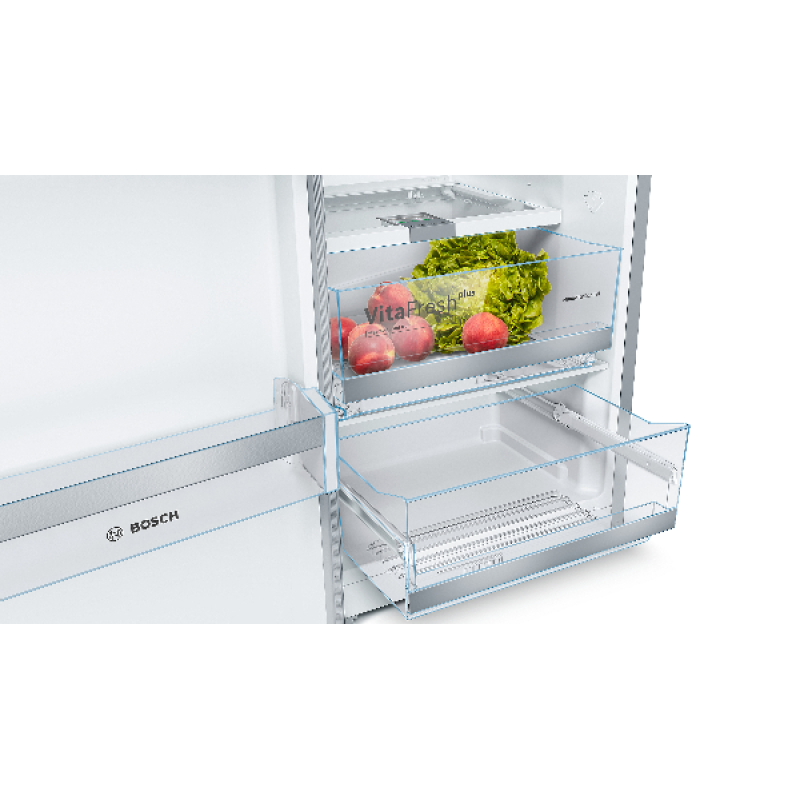De Bosch KSV36AIDP koelkast kastmodel De Bosch met zijn roestvrijstalen afwerking voegt een vleugje elegantie toe aan je keuken. Hij is eenvoudig vrijstaande te installeren en dankzij de omkeerbare deur past hij zich aan jouw ruimte aan. Hij heeft een totale inhoud van 346 liter en beschikt over 7 legplanken, 5 deurvakken en een MultiBox-koellade om jouw fruit, groenten, vlees en vis langer vers te houden. Zoek je meer flexibiliteit? Deze koelkast is uitgerust met EasyAccess-legplanken. 5 van de 7 glazen legplanken zijn uitneembaar en 4 zijn in hoogte verstelbaar. De deurvakken zijn ook in hoogte verstelbaar, zodat je jouw koelkast naar wens kunt indelen. FreshSense-technologie zorgt voor een constante temperatuur en snelle koeling, waardoor reeds gekoelde producten vers blijven. De Bosch koelkast is bovendien uitgerust met ledverlichting voor optimaal zicht op de inhoud.
