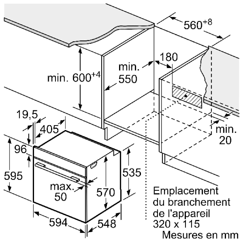 Diepte bij geopende deur (90°) 1040