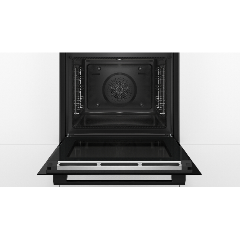 Til je kookkunsten naar een hoger niveau met de Bosch Serie 4 multifunctionele inbouwoven in zwarte uitvoering. Je verwarmt de oven, dankzij het hoge vermogen van 3600 W, in een handomdraai voor; het indicatielampje laat je weten wanneer de gewenste temperatuur is bereikt. Kies uit een waaier aan functies, van de klassieke boven- en onderwarmte tot langzaam garen of warmhouden. Met de innovatieve 3D heteluchtfunctie benut je dan weer maximaal het ruime volume van 71 l. Zo bak je op 3 niveaus tegelijk verschillende gerechten, zonder dat deze elkaar beïnvloeden. Na gebruik maak je zowel de buiten- als de binnenkant makkelijk schoon. De draaiknoppen blijven verzonken voor een vlotte reiniging, terwijl je met de Cleaning Assistance de oven vanbinnen zonder schrobben weer doet glanzen. Ook bespaar je met de Serie 4 heel wat energie, deze geniet dan ook een energie-efficiëntieklasse A.