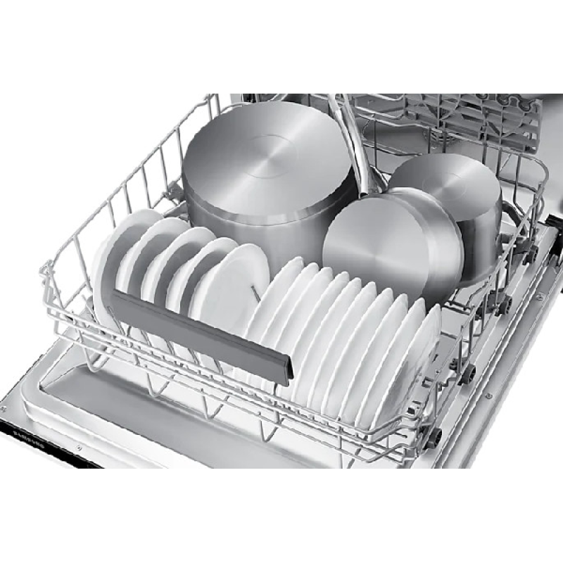 De Samsung DW60A6082BB inbouwvaatwasser heeft een strak wit design dat harmonieus in je keuken past. Met afmetingen van 59,8 x 81,5 x 55 cm past hij in de meeste inbouwruimtes. Met een capaciteit van 13 couverts is er genoeg ruimte om al het servies van een familiediner of een etentje met vrienden te wassen. De verstelbare bovenkorf biedt flexibiliteit voor grotere schalen of pannen. Het flexibele laadsysteem laat je de manden aanpassen zodat je verschillende soorten servies kunt plaatsen, van borden tot delicate glazen. Deze aanpasbaarheid optimaliseert de binnenruimte en maakt elke wascyclus eenvoudiger en efficiënter.
