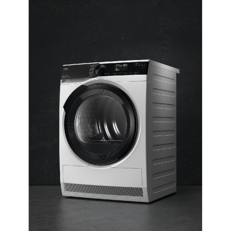De witte AEG AbsoluteCare Serie 8000 TR88A64C is een energiezuinige warmtepompdroger. Met zijn innovatieve technologieën zorgt hij voor een optimaal droogresultaat en beschermt hij jouw kleding.