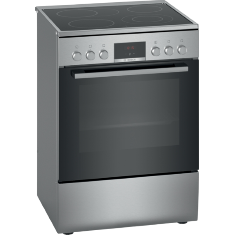 De Bosch HKR39C250 is een veelzijdig vrijstaand elektrisch fornuis uit de Serie 4, uitgevoerd in roestvrij staal. Het beschikt over een keramische kookplaat met 4 kookzones, waaronder een uitbreidbare braadzone voor grotere pannen en een variabele kookzone. De kookplaat is voorzien van restwarmte-indicatie per zone, wat bijdraagt aan de veiligheid tijdens het koken. De oven heeft een ruime inhoud van 66 liter en biedt 7 verwarmingssystemen, zoals 3D Hetelucht, boven- en onderwarmte, en een pizzastand. Dankzij de 3D Heteluchtfunctie wordt warmte gelijkmatig verdeeld, waardoor gerechten op meerdere niveaus tegelijk bereid kunnen worden met consistente resultaten. Verder is het fornuis uitgerust met een gebruiksvriendelijk led-display en verzinkbare draaiknoppen, wat niet alleen de bediening vereenvoudigt, maar ook het eenvoudig is schoon te maken. De oven beschikt over EcoClean Direct, een zelfreinigende katalytische achterwand die vet absorbeert en verbrandt, waardoor schoonmaken minder tijdrovend is. Tot slot is het fornuis voorzien van een kinderslot om ongewenste bediening te voorkomen.