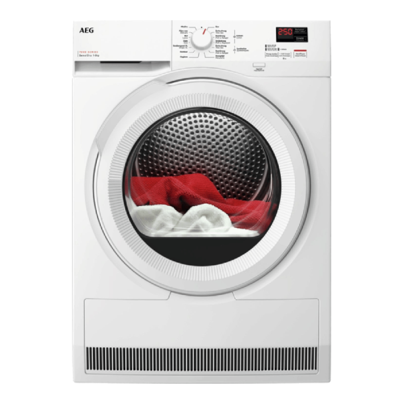 De AEG TR78AK12B witte voorlader wasdroger uit de 7000-serie is een krachtig en efficiënt apparaat met een droogcapaciteit van 8 kg. Hij heeft het energielabel C, is energiezuinig en biedt 14 droogprogramma's, geschikt voor verschillende soorten wasgoed, zoals katoen, zijde of synthetische stoffen. De draaiknop aan de voorkant maakt het gemakkelijk om de machine in te stellen op de cyclus die bij jou past. Dankzij de standaardafmetingen van 86 x 59,6 x 66,3 cm is de wasdroger eenvoudig vrijstaand te installeren in je bijkeuken of badkamer. AEG heeft dit duurzame apparaat ondersteund met 10 jaar garantie op de motor.