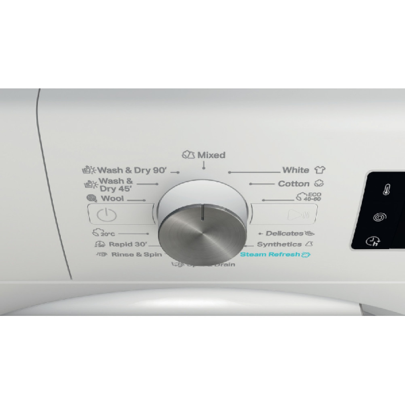 Deze Whirlpool was-droogcombinatie beschikt over 14 verschillende was- en droogprogramma's, waaronder speciale cycli voor wol, synthetische stoffen en een snelprogramma van 30 minuten. Het gebruiksvriendelijke bedieningspaneel combineert een draaiknop met aanraakknoppen, waardoor je eenvoudig het gewenste programma selecteert. De uitgestelde startfunctie stelt je in staat om de wascyclus op een later tijdstip te laten beginnen, zodat je de was kunt plannen op momenten die jou het beste uitkomen. Daarnaast biedt de machine een resttijdindicatie, zodat je altijd weet hoelang het programma nog duurt.