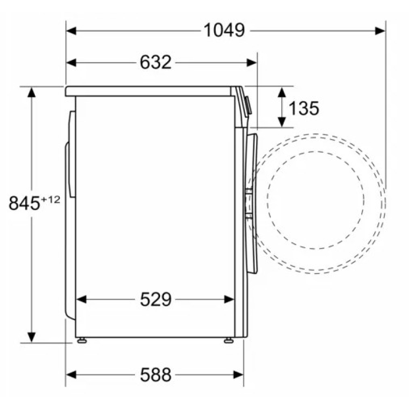 Diepte bij geopende deur (90°) 1049