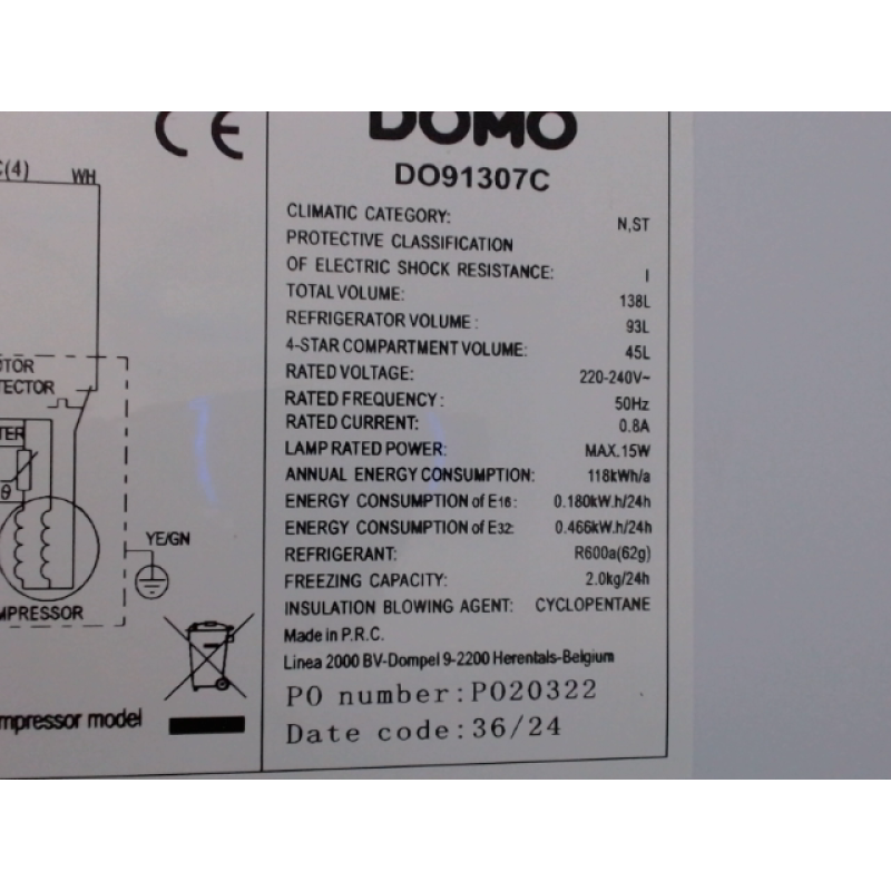 De DO91307 van DOMO in zwarte uitvoering is een koelkast en diepvriezer in één. Het toestel biedt ruimte voor heel wat boodschappen, n totaal tot wel 138 liter. Het koelgedeelte van 93 liter voorziet in 3 glazen leggers, een groentelade en 3 deurvakken, allemaal keurig verlicht. Het vriesgedeelte van 45 liter heeft 3 transparante lades. Je ziet in 1 oogopslag waar de ijsjes liggen en waar je de pizza’s terugvindt. Het apparaat heeft een laag verbruik en heeft het energielabel C gekregen.