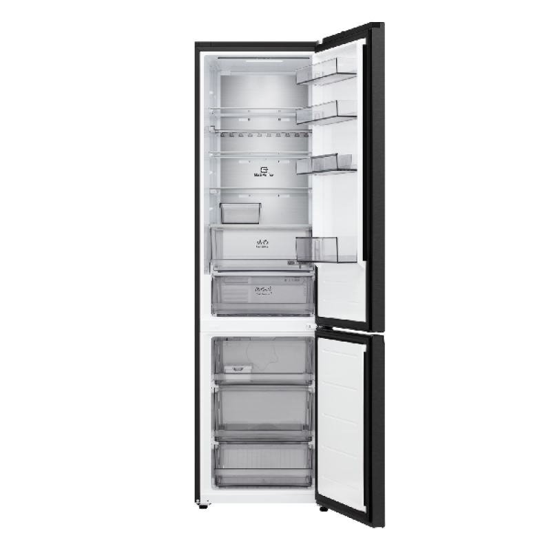 Deze koel-vriescombinatie beschikt over een led-binnenverlichting die zorgt voor een helder overzicht van de inhoud, zodat je gemakkelijk kunt zien wat je in huis hebt. Dankzij de No Frost-functie hoef je de vriezer nooit meer handmatig te ontdooien, wat tijd en moeite bespaart. Bovendien is het toestel uitgerust met de Smart Inverter Compressor, die zorgt voor een stille werking en een langere levensduur. Deze compressor past zijn snelheid aan op basis van de koelbehoefte, wat resulteert in een energiezuinige werking en minder slijtage van het apparaat.