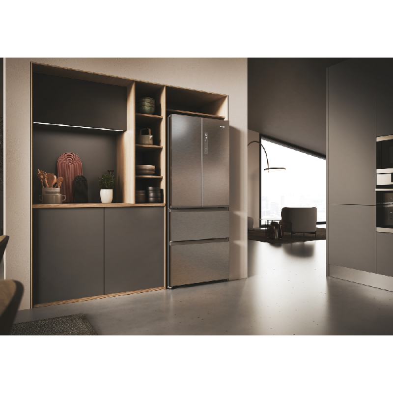 Met zijn roestvrijstalen afwerking combineert de HFR3718DNMM French Door 70 SERIES 3 koel-vriescombinatie van Haier kwaliteit, een stijlvol design en moderne technologie. De geïntegreerde Fresh Tech koeltechnologie garandeert optimale koeling van je voedsel in beide compartimenten. Met de 2 aparte koelcircuits kun je de temperatuur van elke zone aanpassen, zodat elk voedselitem snel wordt gekoeld. Door het vochtigheidsniveau en de temperatuur aan te passen aan de inhoud, blijven alle ingrediënten langer vers.