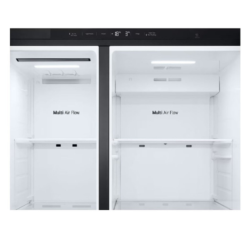 Met een totale netto-inhoud van 641 liter biedt deze LG-koelkast voldoende ruimte voor al je boodschappen. Het koelgedeelte van 420 liter is voorzien van 4 glazen in hoogte verstelbare legplanken en 2 groentelades, waardoor je je verse producten overzichtelijk kunt opbergen. Daarnaast beschikt het koelgedeelte over 4 deurvakken, ideaal voor het opbergen van flessen, sauzen en andere kleinere items. Het vriesgedeelte van 221 liter heeft 4 legplanken en 2 vrieslades voor een efficiënte indeling. Dankzij de No Frost-technologie hoef je het vriesgedeelte nooit meer handmatig te ontdooien, terwijl de Multi Air Flow-technologie voor een gelijkmatige luchtcirculatie en langere versheid zorgt.