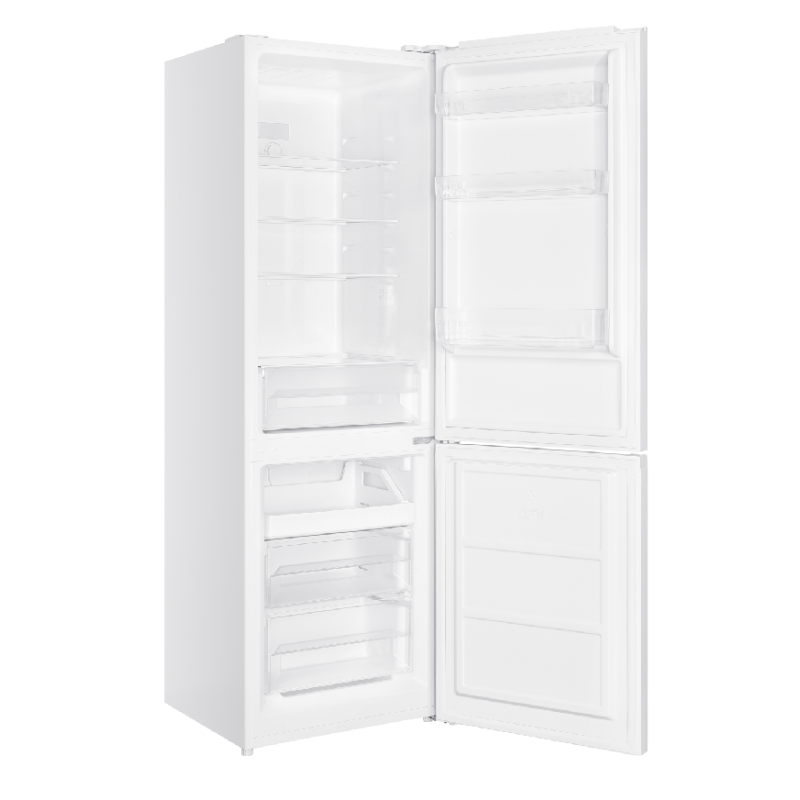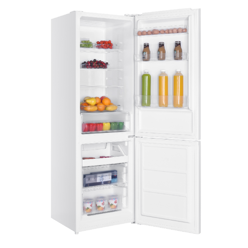 De witte koelkast met vriesvak OFK 611-1 van OK is een praktisch en ruim apparaat dat gemakkelijk een plekje vindt in je keuken. Met zijn standaardafmetingen (58 x 185,8 x 59,7 cm) kan hij vrijstaand worden geplaatst en beschikt hij over een vriesruimte van 83 l waarin je ijs en diepvriesgroenten kunt bewaren, en een koelruimte van 210 l. Dankzij de 3 verstelbare legplanken in het vriesgedeelte en de legplanken in de deur heb je voldoende ruimte om je verse levensmiddelen, potjes en flessen op te bergen en ze naar wens te ordenen. Bij stroomuitval houdt deze koel-vriescombinatie je levensmiddelen 8,5 uur lang koel.