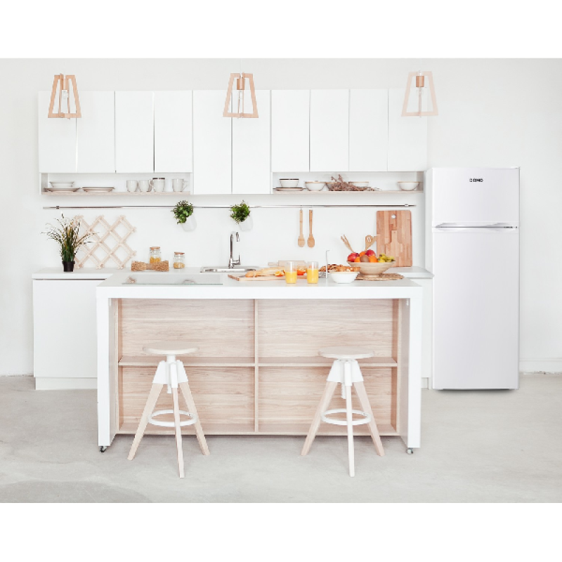 Deze witte Domo D091401C koelkast met diepvries heeft een compact formaat en is daardoor perfect voor kleine keukens. Hij beschikt echter over een royaal koelvak en een klein, praktisch vriesvak voor het bewaren van wat diepvriesproducten en ijsblokjes.