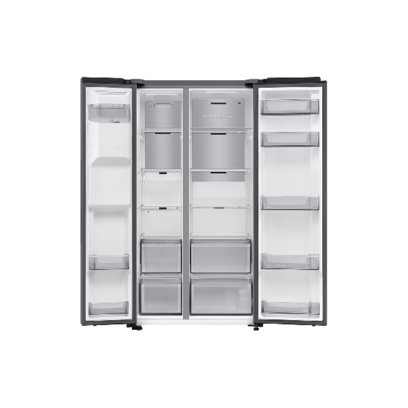 De Samsung RS70F66KCTEF Amerikaanse koelkast uit de 7-serie combineert elegantie en functionaliteit. De roestvrijstalen afwerking verfraait de esthetiek van je keuken. Hij biedt een royale capaciteit dankzij de SpaceMax-technologie. De slanke wanden maximaliseren de binnenruimte zonder de buitenafmetingen te vergroten. Je hebt voldoende opslagruimte om een grote hoeveelheid verse en diepvriesproducten te bewaren. Deze ruime koelkast is dus bijzonder geschikt voor grote gezinnen.