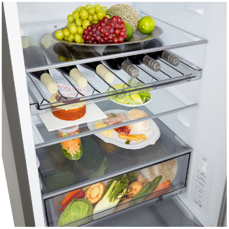 LG heeft dit combi-apparaat uitgerust met geavanceerde koeltechnologieën om je voedsel optimaal te bewaren. Wanneer je bijvoorbeeld de deur opent, verspreidt de DoorCooling+-technologie een luchtgordijn dat je voedsel in de koelkast vers houdt. De LinearCooling-technologie zorgt voor een stabiele temperatuur, waardoor schommelingen worden beperkt en voedsel langer vers blijft. En NoFrost voorkomt ijsvorming op de wanden, waardoor ontdooien overbodig wordt. De Smart Inverter-compressor zorgt voor een stille en energiezuinige werking, waardoor de levensduur van het apparaat wordt verlengd en het energieverbruik wordt verminderd.