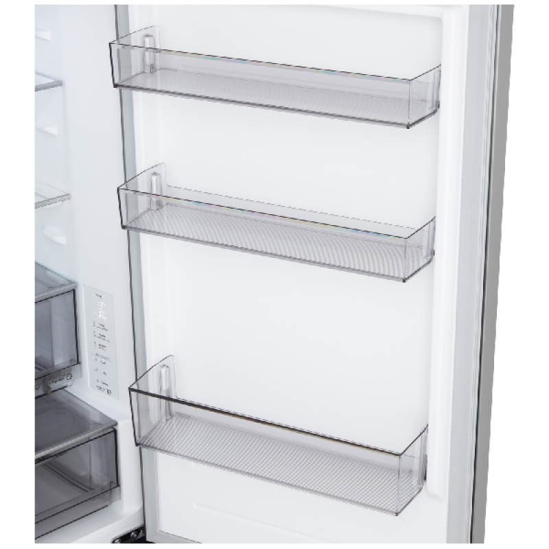 Deze GBBS312APY koel-vriescombinatie van LG heeft een modern design met een zwarte stalen afwerking, die je keuken een elegante uitstraling geeft. Hij heeft standaardafmetingen in breedte en diepte, een hoogte van 186 cm en dankzij een vrijstaand ontwerp is hij eenvoudig in elke keuken of bijkeuken te installeren. Met zijn vlakke, omkeerbare deuren zonder offset past hij zich aan de indeling van je keuken aan en biedt hij extra flexibiliteit. De discrete geïntegreerde handgrepen maken het openen en sluiten van de deuren gemakkelijk. Bovendien zorgt de ledverlichting binnenin voor een optimale zichtbaarheid, zelfs in de verste hoeken van de koelkast.