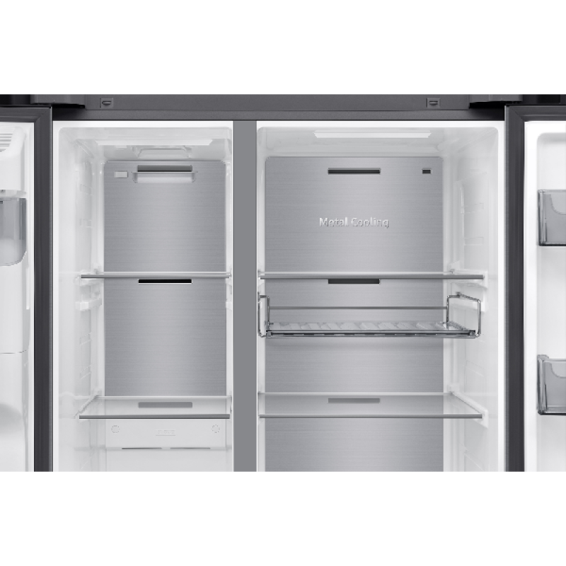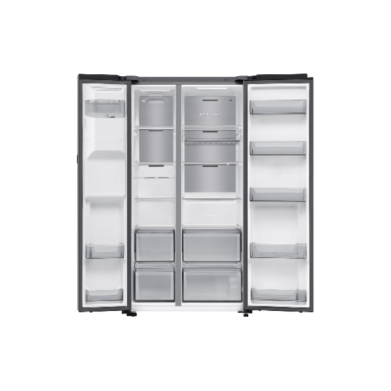 Met een totale capaciteit van 621 liter, waarvan 401 liter voor het koelgedeelte en 220 liter voor het vriesgedeelte, biedt de Samsung RS90F64EDTEF voldoende plaats voor al je boodschappen. Beide compartimenten zijn uitgerust met stevige glazen leggers en handige lades, zodat alles netjes georganiseerd is. De vershoudlades zorgen ervoor dat groenten en fruit langer vers blijven, terwijl in de hoogte verstelbare leggers je helpen om de ruimte flexibel in te delen. Tot slot verlicht heldere led-verlichting elk hoekje, zodat je altijd vlot vindt wat je zoekt. Een doordachte indeling die meevolgt met je dagelijkse routine.