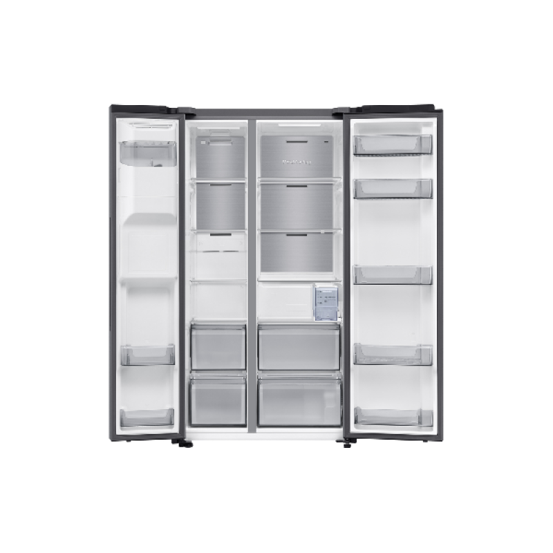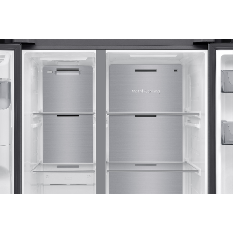 De Samsung RS70F65KETEF is uitgerust met technologieën die zorgen voor een optimale bewaring van je voedsel, elke dag opnieuw. Het Twin Cooling Plus-systeem maakt gebruik van 2 onafhankelijke koelcircuits om een ideale luchtvochtigheid in elk compartiment te behouden en voorkomt dat geuren zich tussen koelkast en diepvriezer vermengen. Daarnaast zorgt de Multi Air Flow-technologie voor een gelijkmatige verdeling van de koude lucht, wat een stabiele temperatuur garandeert, zelfs bij veelvuldig openen van de deur. Met deze bundel van essentiële functies biedt dit model een verlengde versheid en een optimale hygiëne.