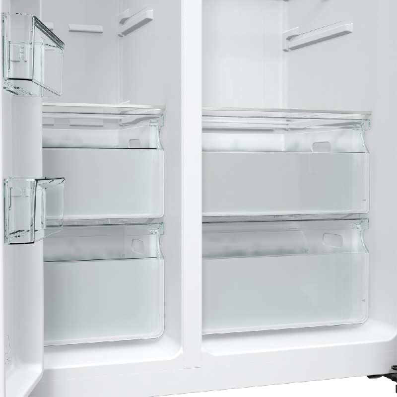 De Hisense RS5P535NPCE is uitgerust met Dual Tech Cooling: 2 gescheiden koelsystemen die het koel- en vriesgedeelte onafhankelijk van elkaar regelen. Zo blijft de luchtvochtigheid optimaal en blijven geur- en smaakoverdracht achterwege. Met een geluidsniveau van slechts 36 dB draait deze koelkast bijna geruisloos, zelfs tijdens piekbelasting.