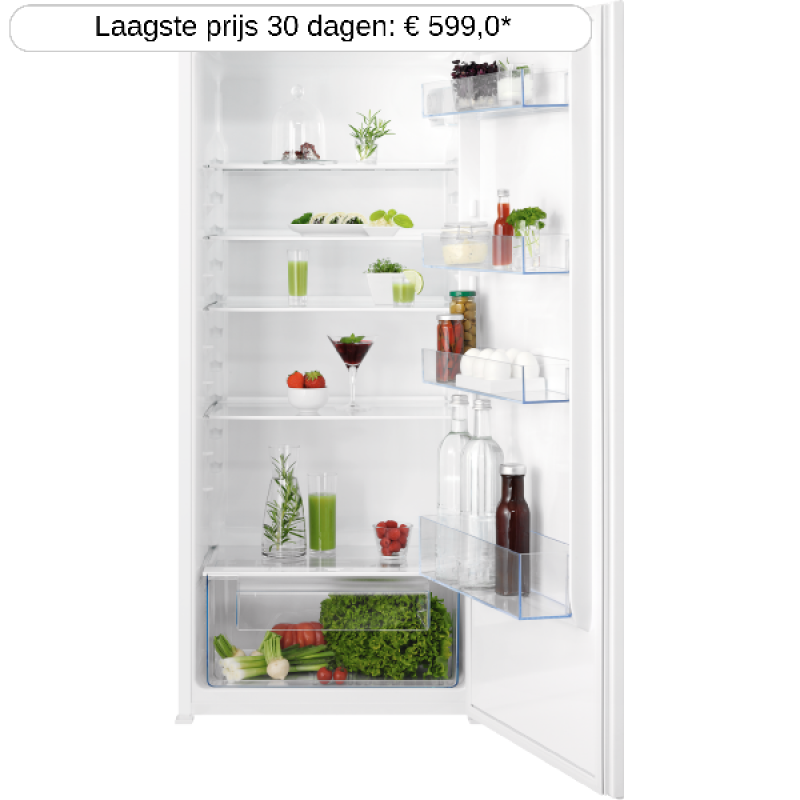 De AEG TSK5O12ES is een inbouwkoelkast die naadloos opgaat in je keuken dankzij het strakke witte design en het glijsysteem voor de deurmontage. Met inbouwafmetingen van 122,5 x 56 x 55 cm (H/B/D) past hij in uiteenlopende keukenkasten. De deur is standaard rechtsdraaiend, maar eenvoudig omkeerbaar voor extra flexibiliteit. Met een geluidsniveau van slechts 34 dB werkt de koelkast bijzonder stil, wat prettig is in open keukens of leefruimtes.